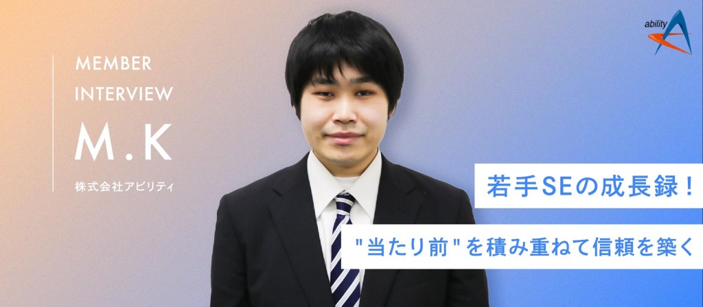 M.K :専門学校を卒業し、2023年にアビリティへ新卒入社。現在はクライアント先のデスクトップアプリ開発業務に従事している。